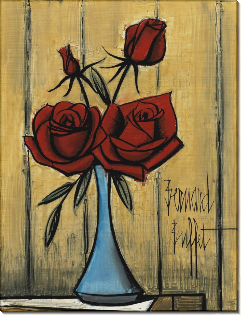Красные розы в голубой вазе. Бюффе, Бернар