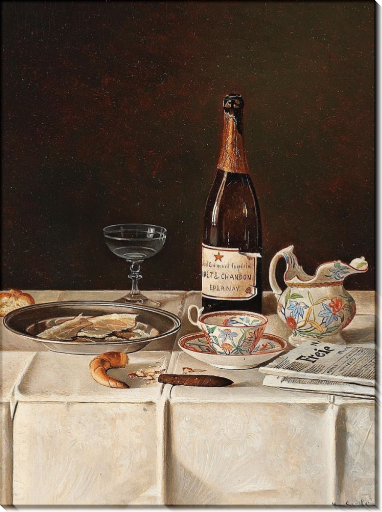 Натюрморт с шампанским и газетой. Шёдль, Макс